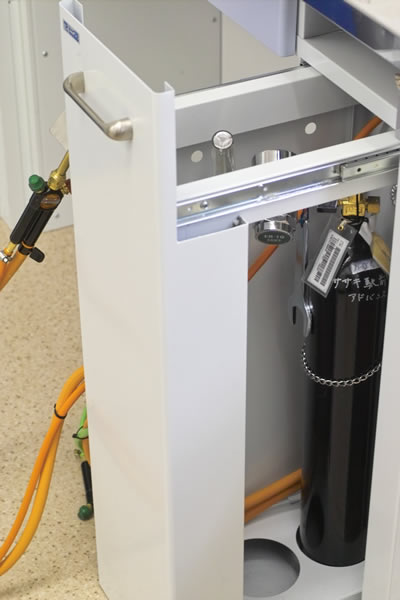 モーターやガスボンベなど邪魔になるような機材も収納可能。