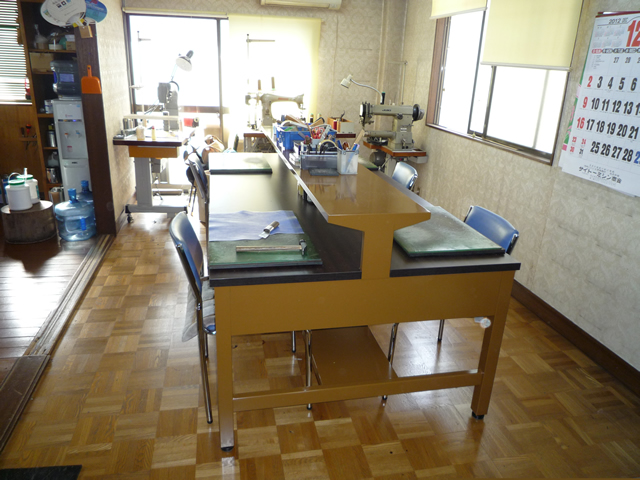■ 靴の自作工房hiro 様 ( 靴の学校・靴の教室 ) 作業台 間口2200×奥行1100×天板高700(全体高900) (写真をクリックすると大きい写真が開きます)
