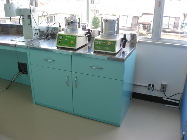 ■有限会社プラスONE 松原作業所様 (写真をクリックすると大きい写真が開きます) 間口1200×奥行600×天板高870(全体高1700) 2台連結両面仕様 本体材質 スチール製 引出し ソフトクローズ機構付 ボールスライドレール 天板 メラミン化粧合板 ステンレス